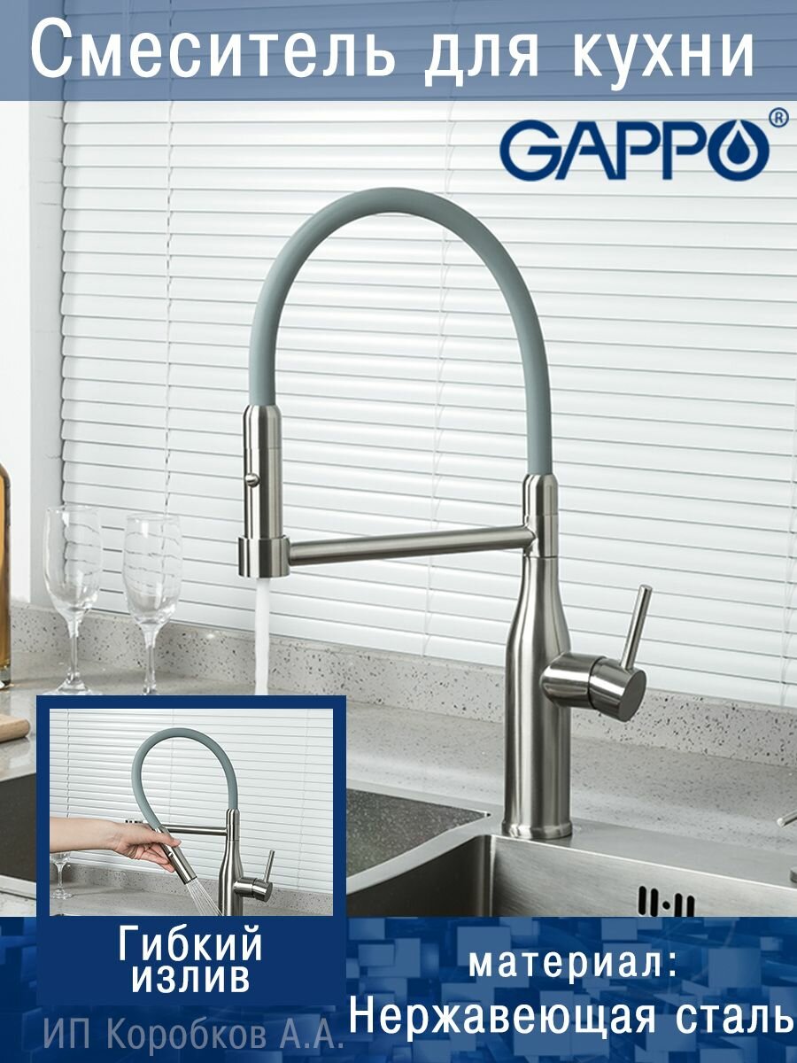 Смеситель для кухни Gappo G4398-55 с гибким изливом, серый/сатин