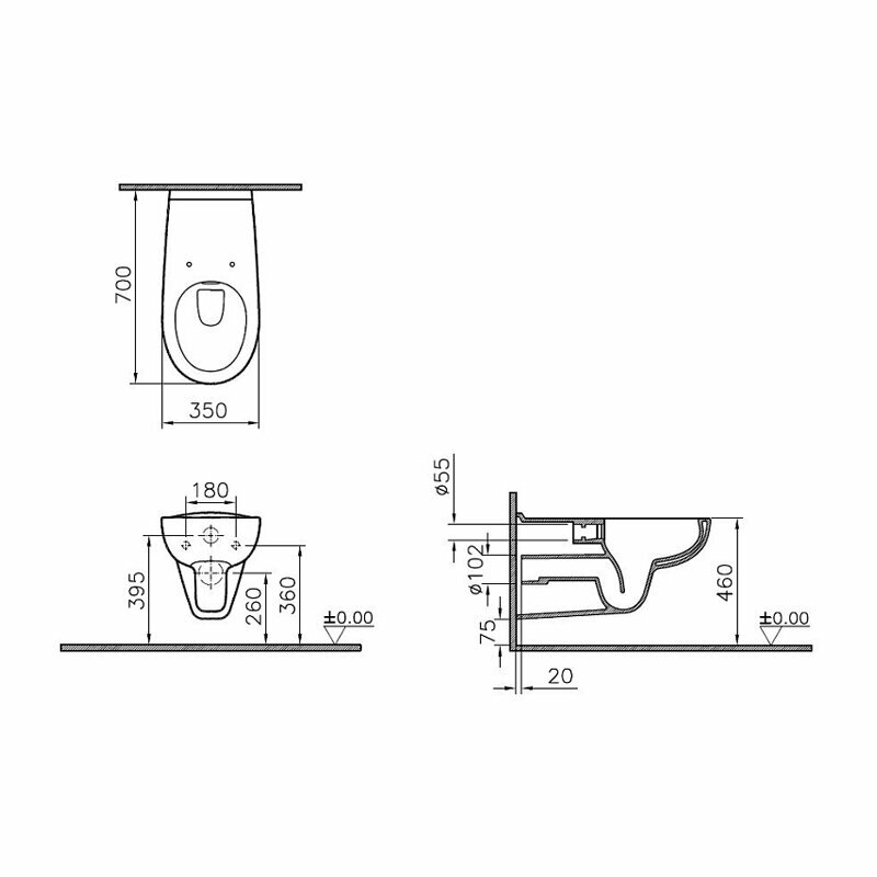 Подвесной безободковый унитаз Vitra Conforma с сиденьем для людей с ограниченными возможностями 5810B003-6234
