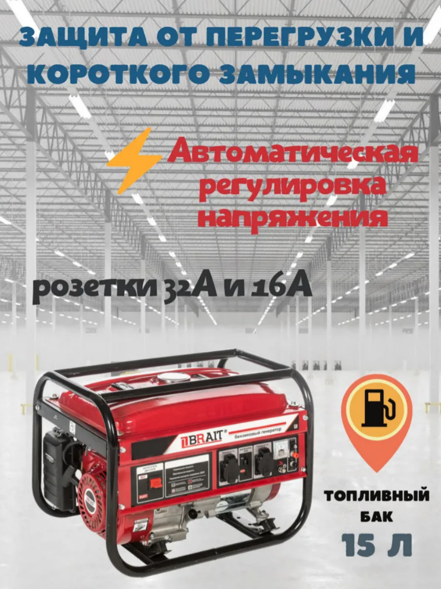 Генератор бензиновый Brait BR 2500-AL / 2,5 кВт бензогенератор бак 15 л / электрогенератор асинхронный 2500 Вт интересное: