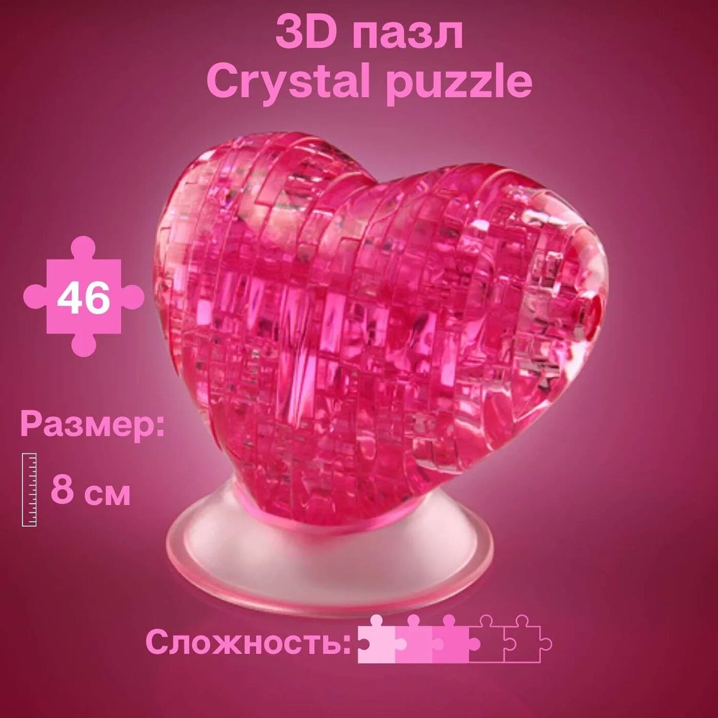 Пазл 3D 46дет Crystal Puzzl Сердце розовое 90002 CRYSTAL PUZZLE