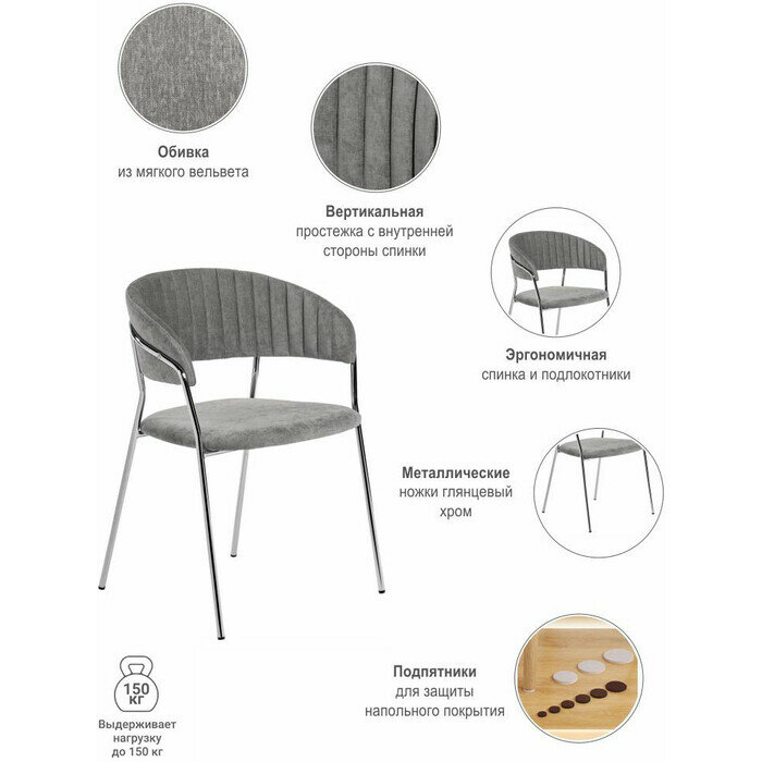 Стул BRADEXHOME Chester Темно-серый (велюр) Размеры: Высота 820мм Глубина 545мм Ширина 500мм