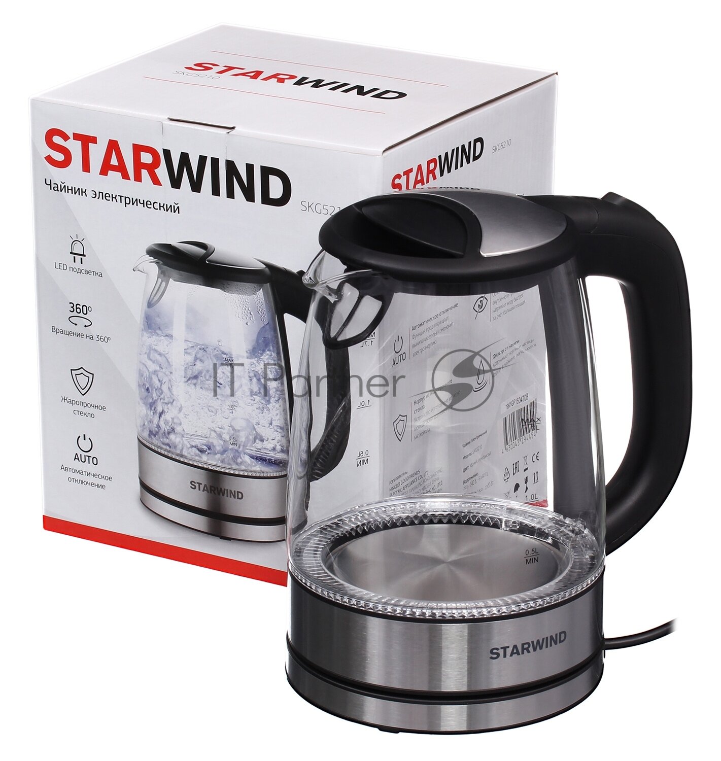 Чайник Starwind SKG5210 черный/серебристый (стекло) .