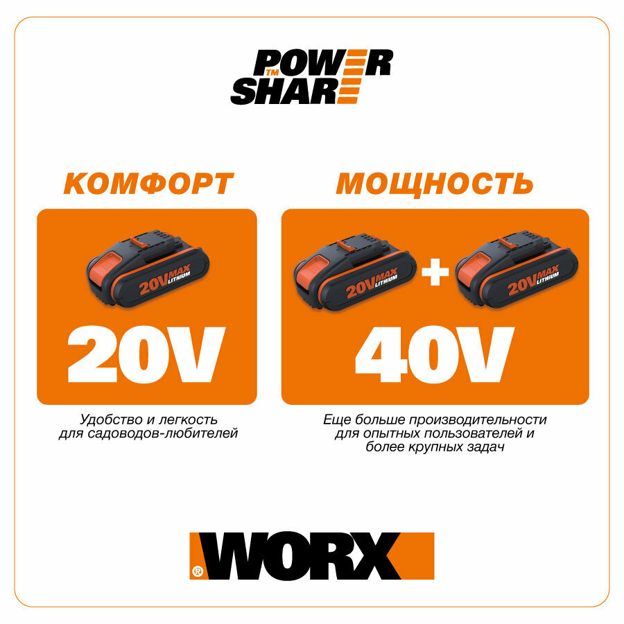 | Совместимость | все инструменты WORX в своей линейке вольтажа |