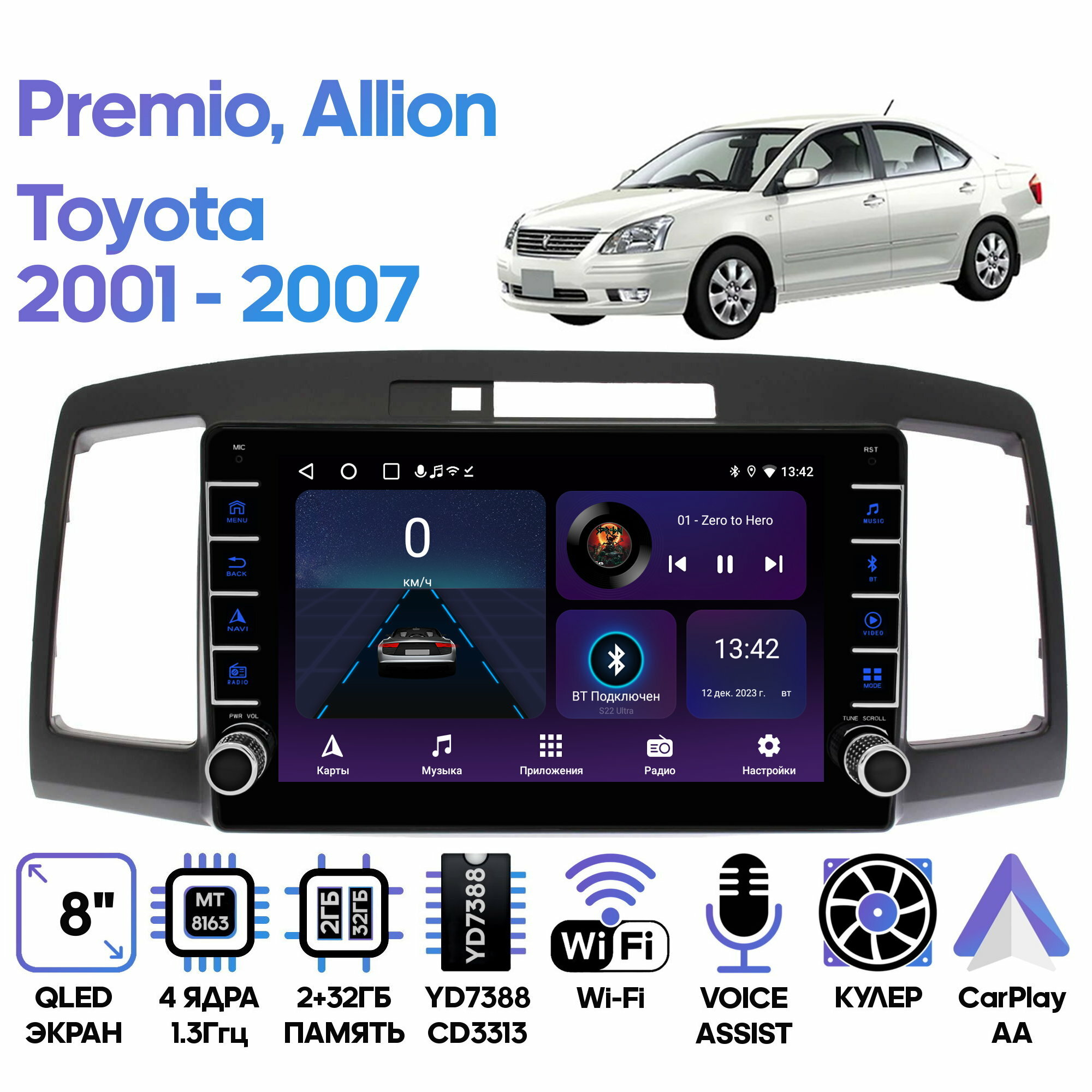 Штатная магнитола Wide Media Toyota Premio/Allion 2001 - 2007 / Android 9, 8 дюймов, WiFi, 2/32GB, 4 ядра интересное: