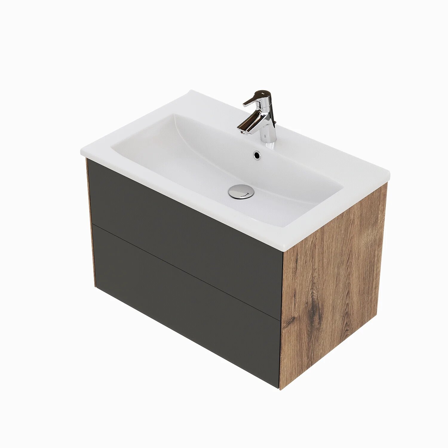 Тумба с раковиной для ванной подвесная AQUATON 1A2581K1AJA00 Сохо 75 дуб веллингтон/графит софт, раковина Элина 75