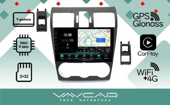 Магнитола Vaycar 09V2 для SUBARU Forester 2013-2015, Impreza 2012-2014 (Андроид, 2+32, 8 ядер, WiFi, BT, 4G, GPS, QLED 9")