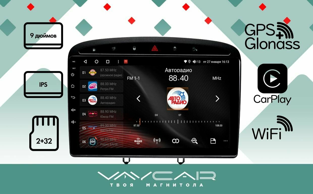 Магнитола Vaycar 09V2 для PEUGEOT 308, 408 2007-2014 (Андроид, 2+32, 8 ядер, WiFi, BT, 4G, GPS, QLED 9")