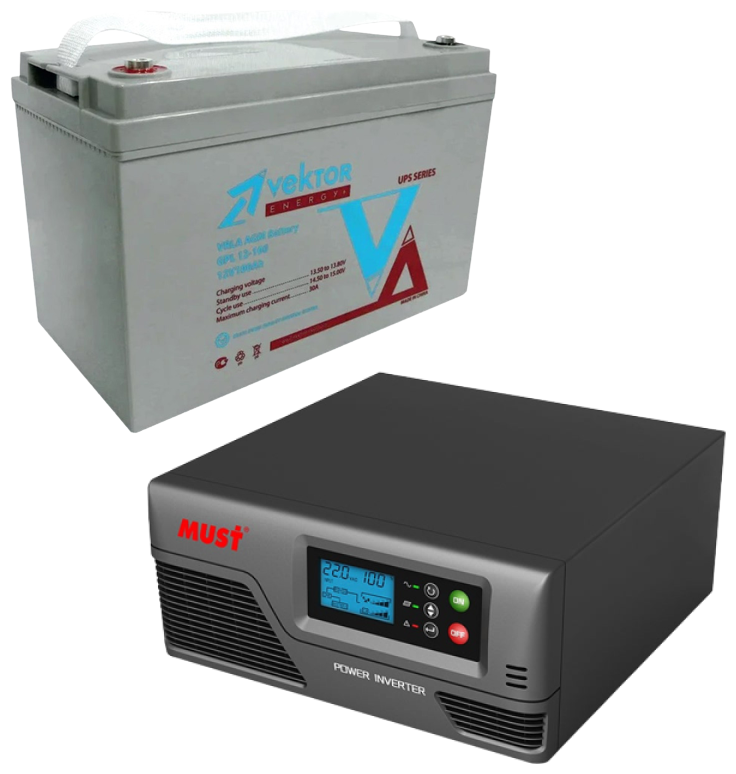 Комплект ИБП MUST+VEKTOR 1000Вт/100А*Ч для котла отопления