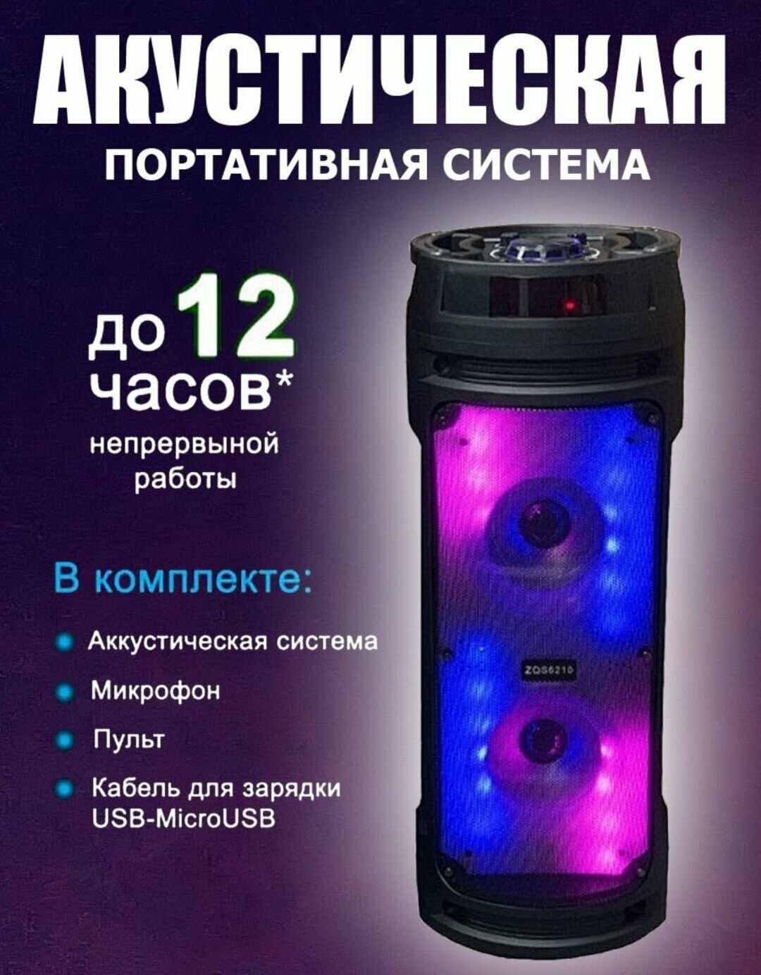 Колонка BT Speaker ZQS-6210W (6.5"х2/30W/BT) Караоке (черный) интересное: