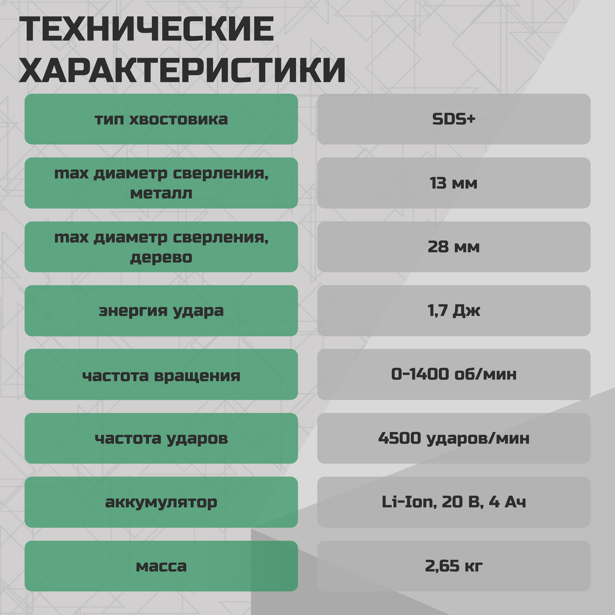 | Тип патрона | SDS-Plus |