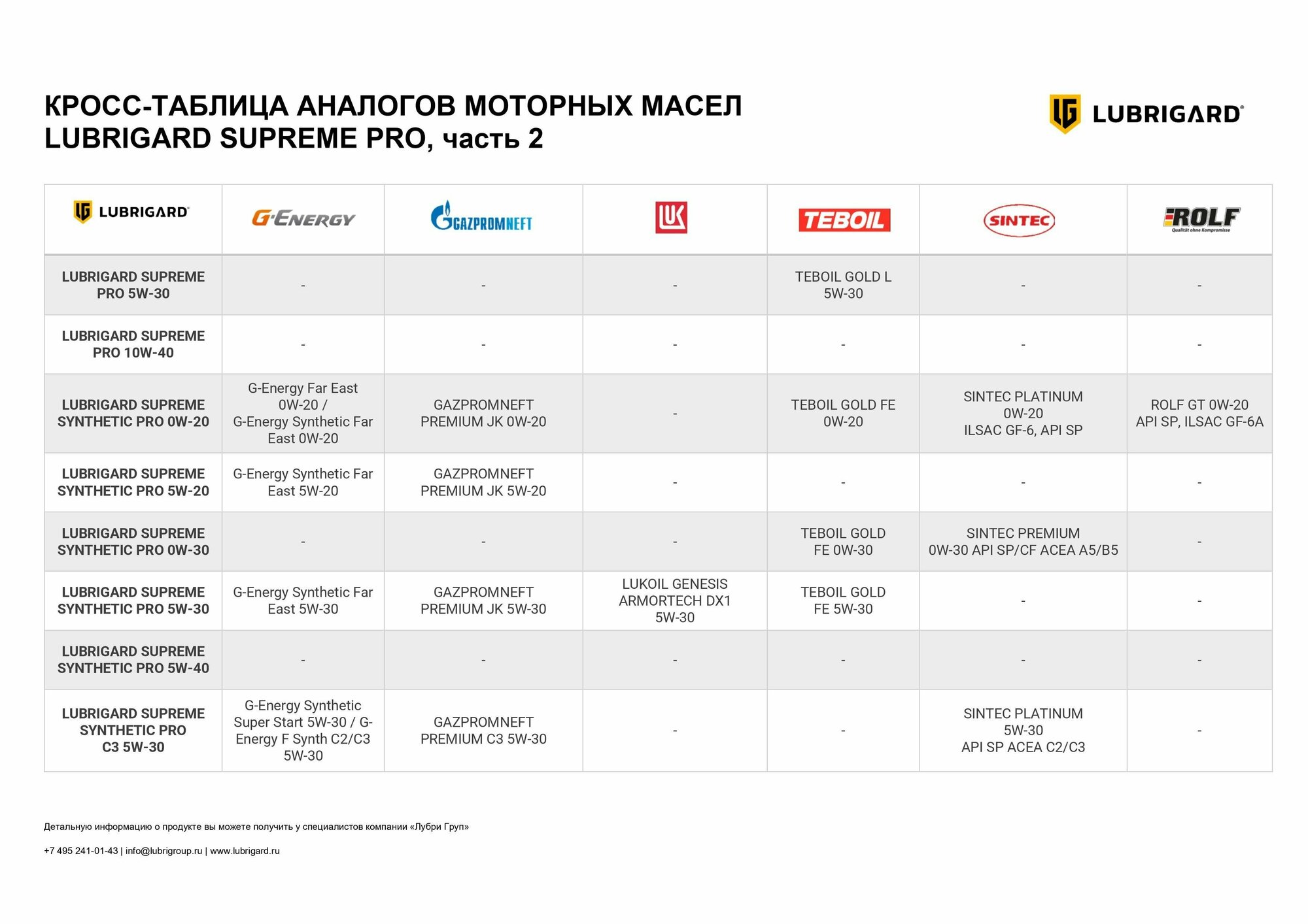СохранитьLUBRIGARD LGPSPMS030CH12 Масо моторное LUBRIGARD SUPREME SYNTHETIC PRO 0W-30 синтетическое 1 , интересное: