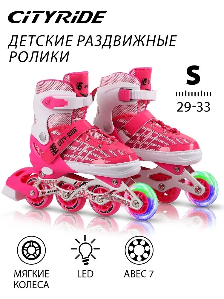 Роликовые коньки детские CITYRIDE, PU колеса/первое светится, ABEC 7, размер S (29-33), раздвижные, JB8800084/S(29-33)