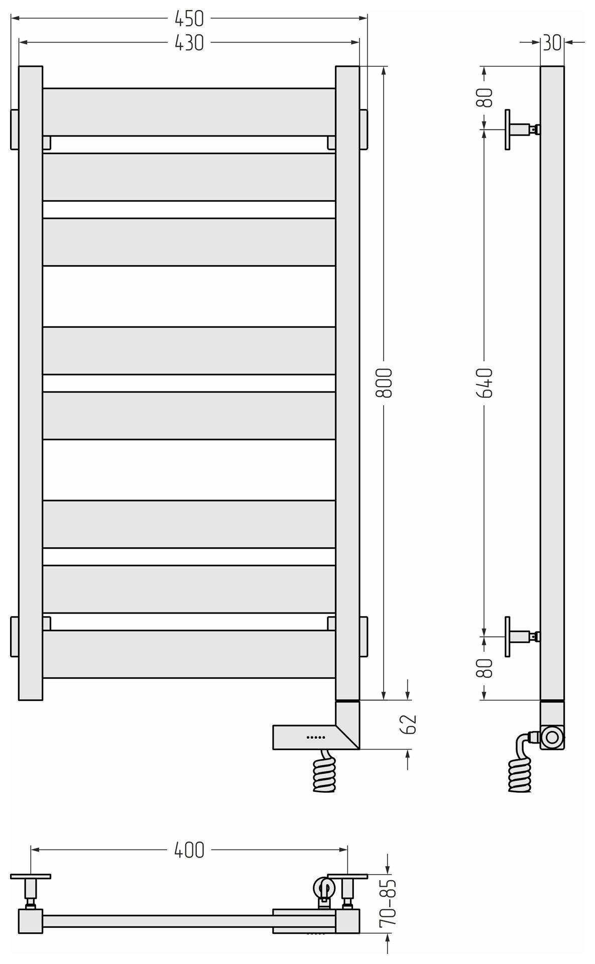 Сунержа Полотенцесушитель электрический Сунержа 00-5804-5030 Богема 3.0 РЭБ, прямая, 500х300 мм/ МЭМ левый, без покрытия