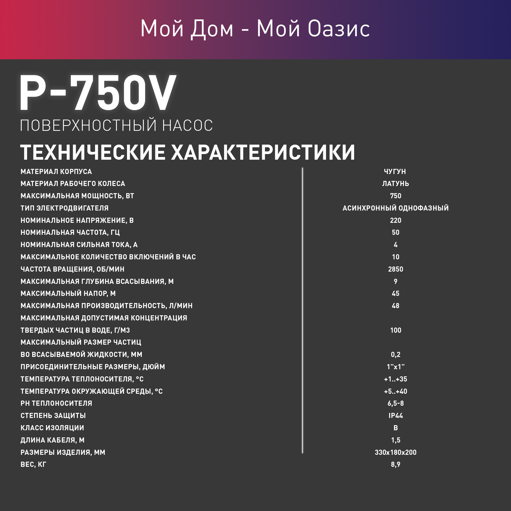Ниже Вы можете прочитать отзывы на Поверхностный насос Oasis P-750V, ознакомится с подробными характеристиками, посмотреть интересные обзоры и фотографии на Поверхностный насос Oasis P-750V.
