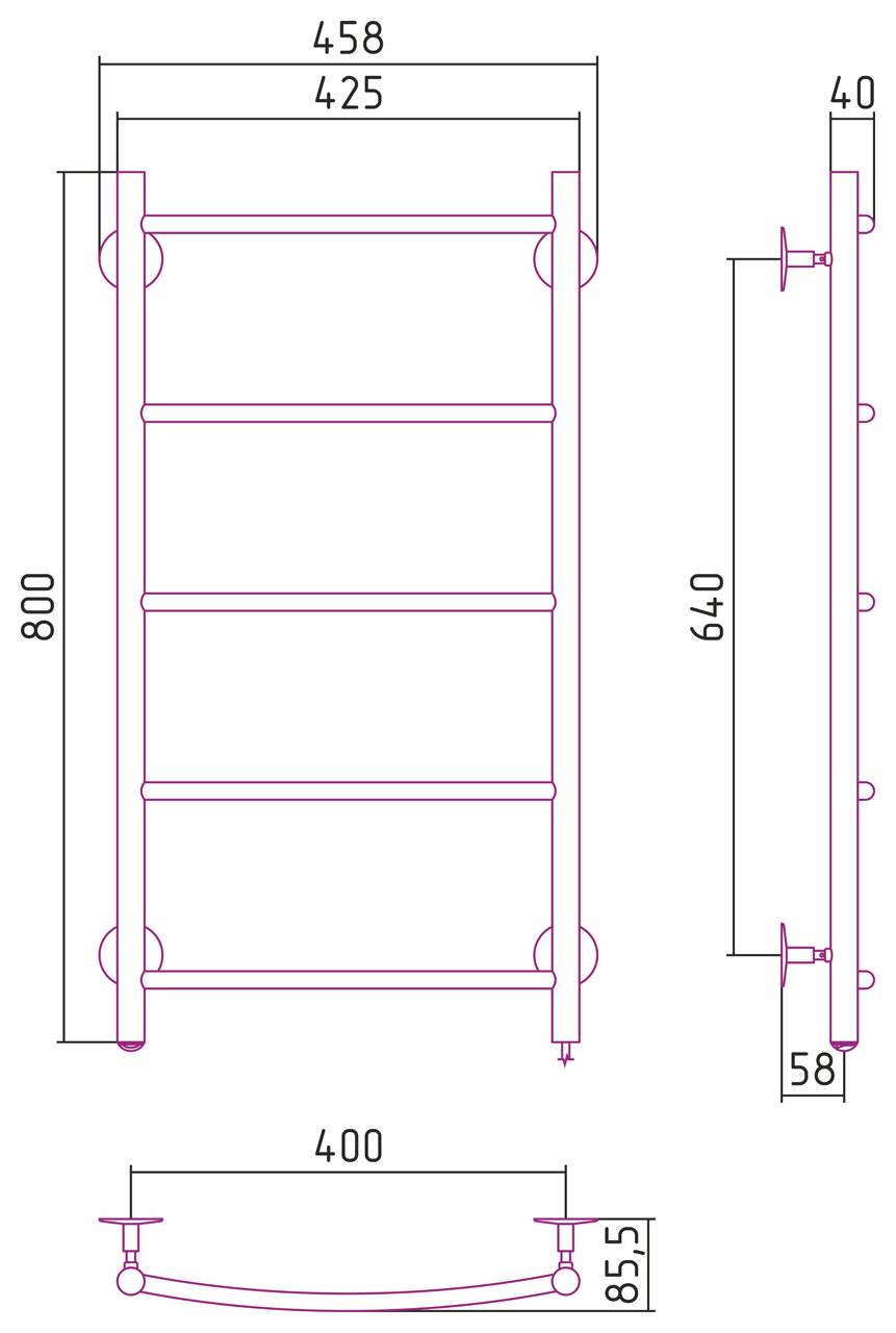 Полотенцесушитель электрический Стилье Формат 40 П 800х400 (5) Г16 Без покрытия