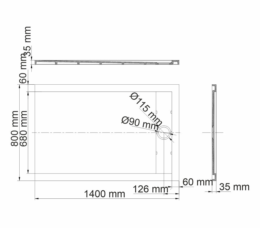 Душевой поддон (140х80) WasserKRAFT Wiese 84T35