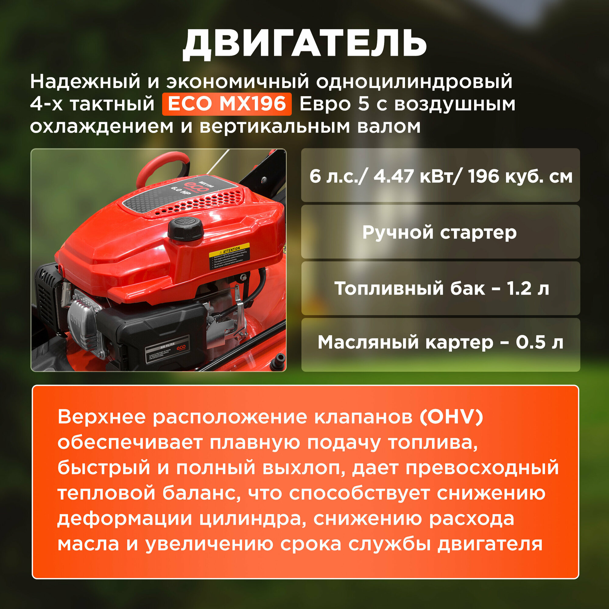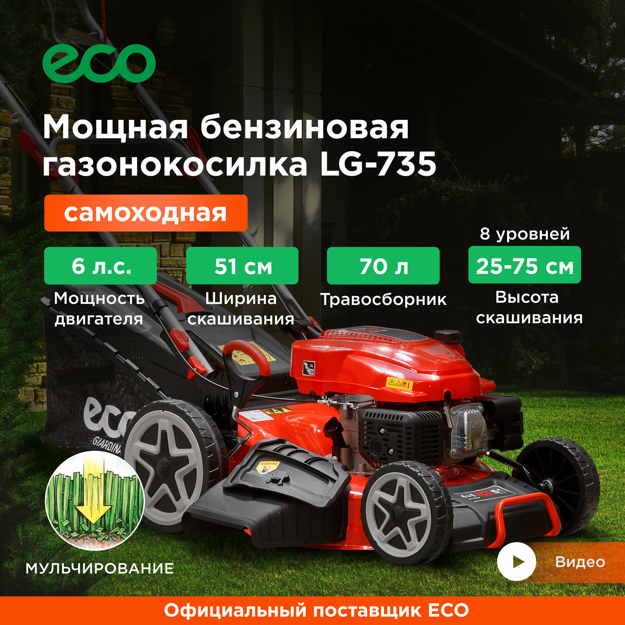 Газонокосилка бензиновая ECO LG-735 самоходная (6.0 л.с., шир. 51 см, самоходная, авт.заслонка, мульчир., стальн. корпус, травосборник 70 л)