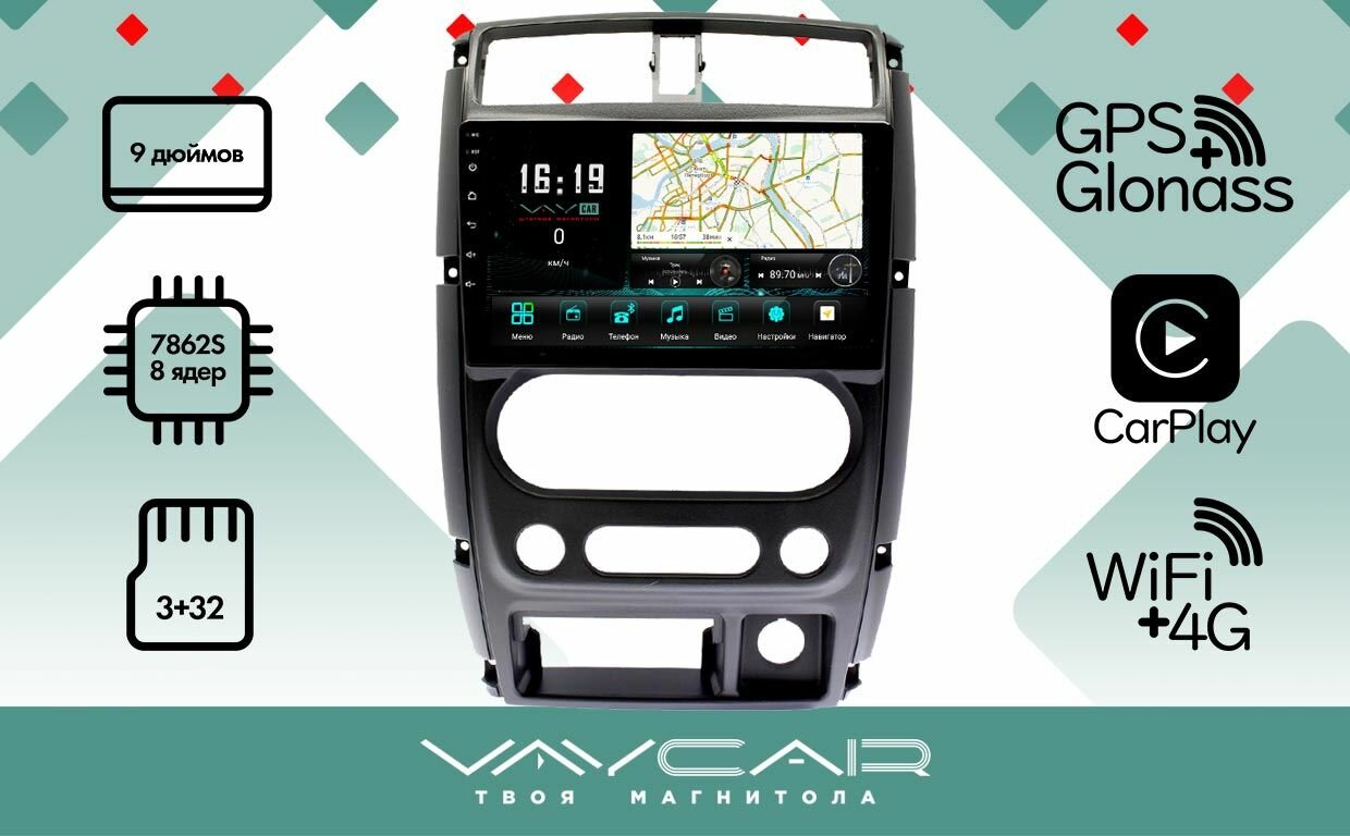 Магнитола Vaycar 09V3 для SUZUKI Jimny 2005 - 2019 (Андроид, 3+32, 8 ядер, WiFi, BT, 4G, GPS, QLED 9")