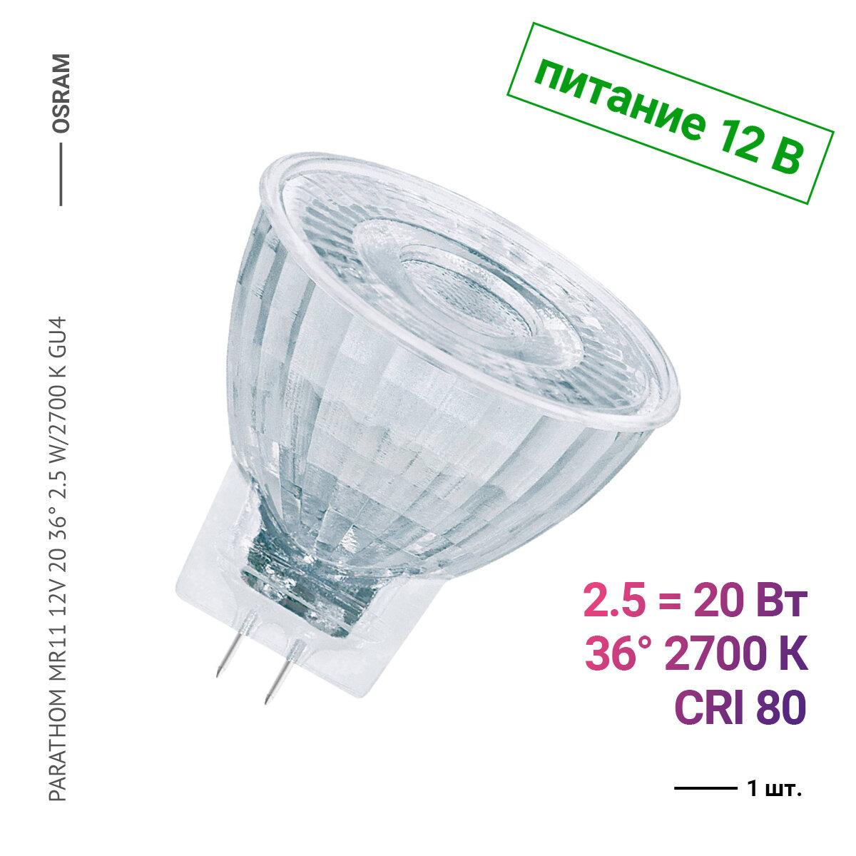 Купить Osram / Ledvance PARATHOM MR11 12V 20 36° 2.5 W/2700 K GU4 (1 шт.)