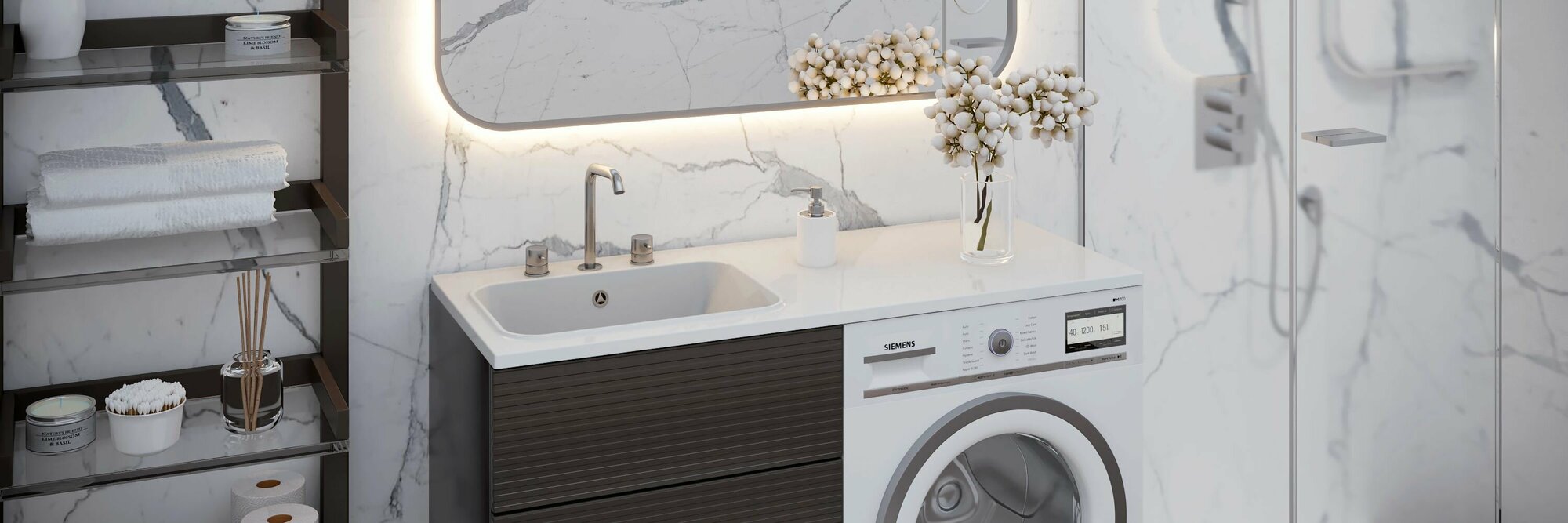 Раковина - столешница над стиральной машиной Paola Bella 120 см левая из литьевого мрамора универсальная, белая интересное: