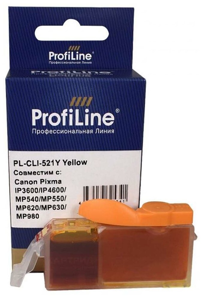 Картридж ProfiLine CLI-521Y для принтеров Canon Pixma IP3600/IP4600/MP540/MP550/MP620/MP630/MP980 водн совместимый
