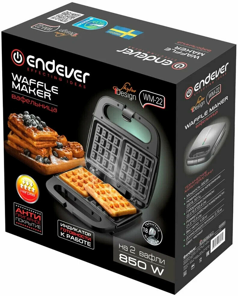 Вафельница ENDEVER Skyline WM-22, черный