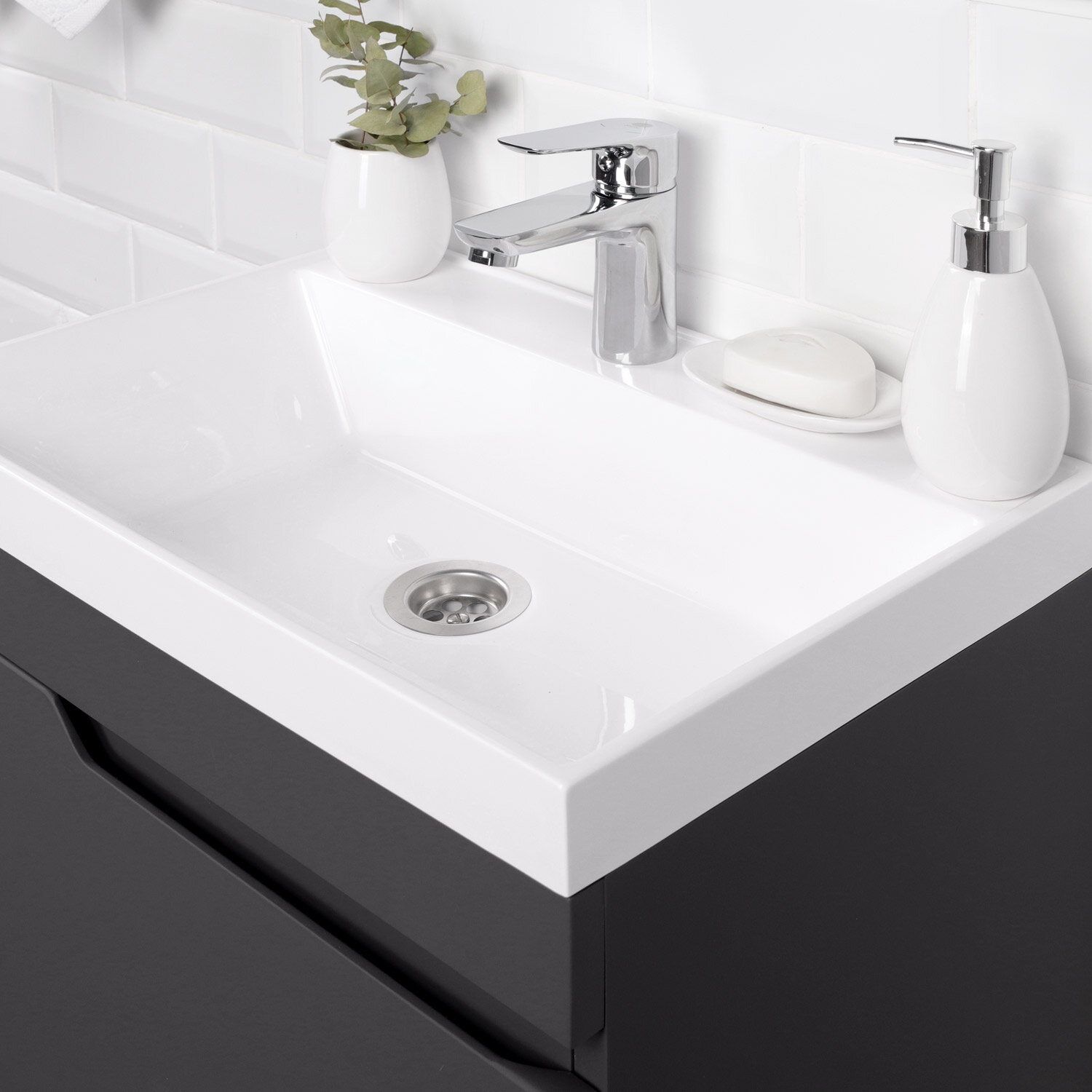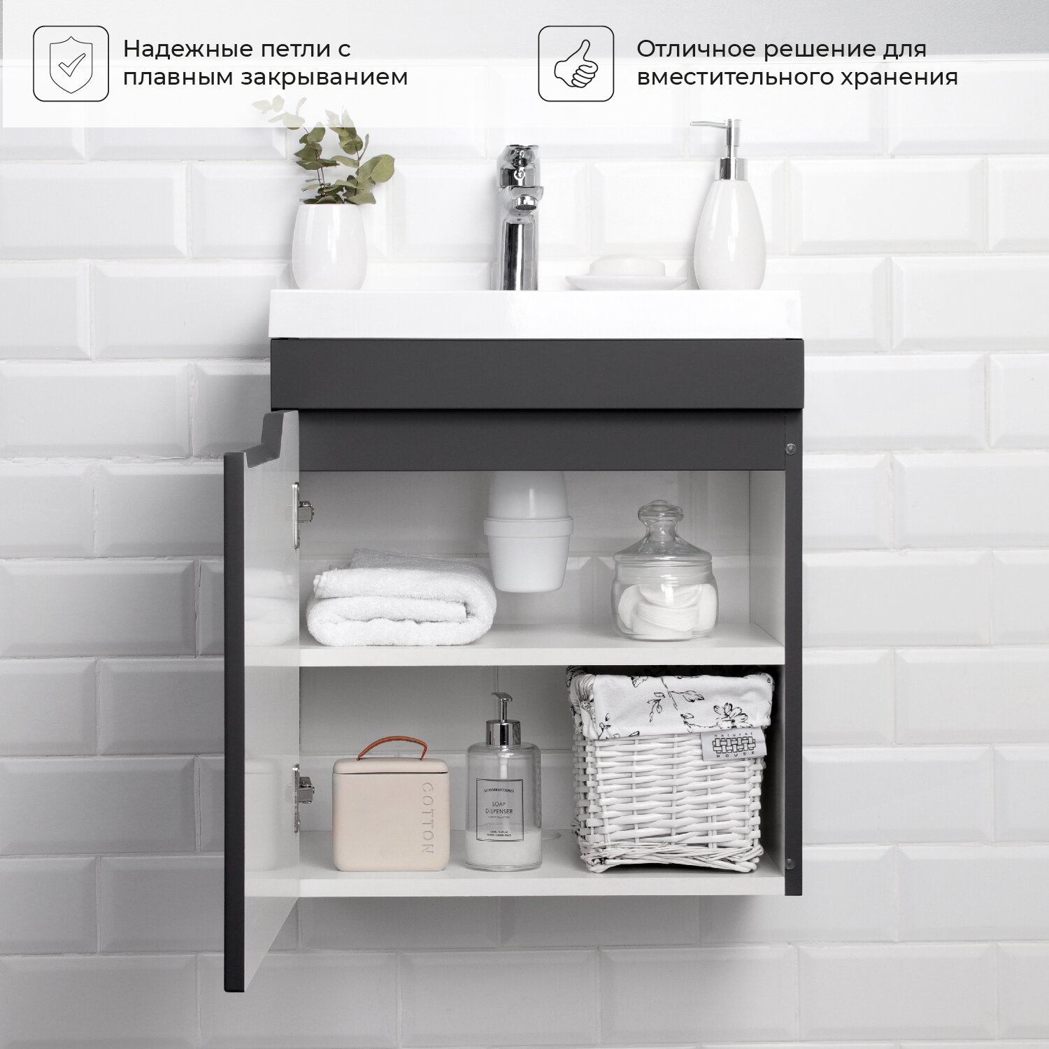 СохранитьТумба с раковиной в ванную / Тумба для ванной / Раковина с тумбой для ванной Итана Alexa 50 496х345х570 левый Графит подвесная интересное: