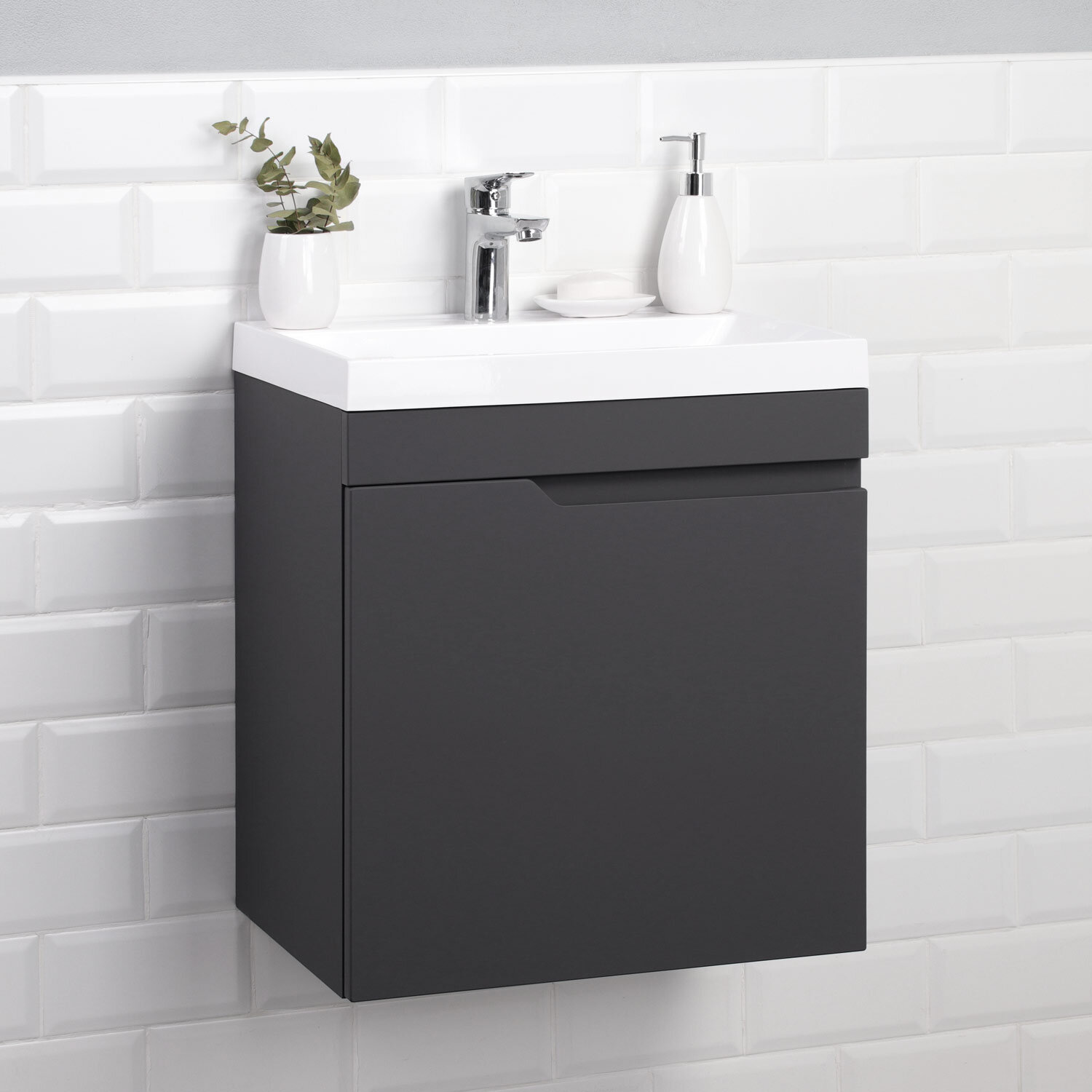 Купить Тумба с раковиной в ванную / Тумба для ванной / Раковина с тумбой для ванной Итана Alexa 50 496х345х570 левый Графит подвесная