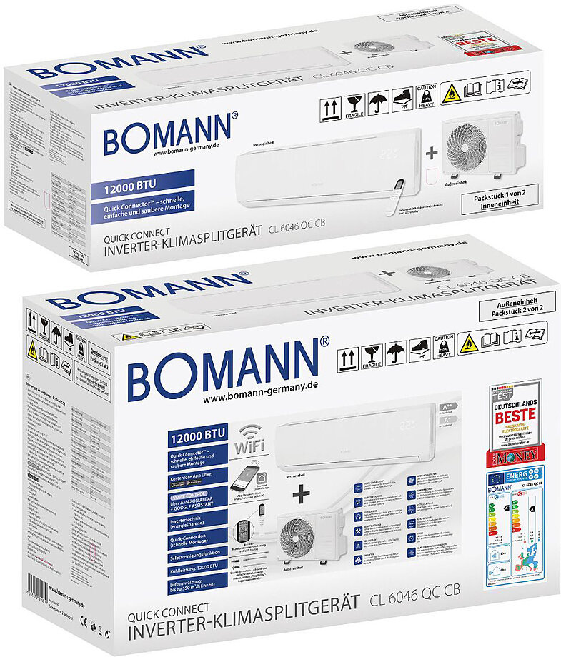 Сплит-система инверторного типа Bomann CL 6046 QC CB 12000 BTU/h WiFi комплект