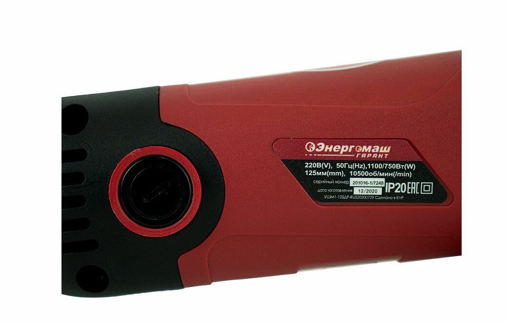 Болгарка, угловая шлифовальная машина УШМ Энергомаш Гарант УШМ1-125ДР сетевая (1100Вт, 10500об/мин, диск 125мм, повышенная пылезащита, удлиненная рукоятка)