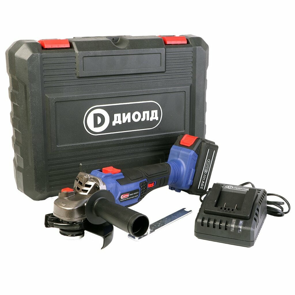 Аккумуляторная шлифмашина диолд АМШУ-20ЛИ-01 / Угловая шлифовальная машина (болгарка) 125 мм, 20 В, 4Ач, 3000-10500об/мин, кейс, производитель Россия