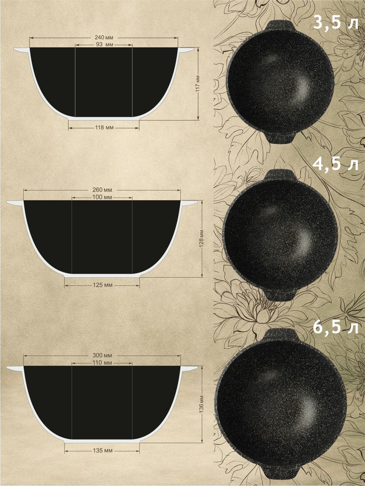 Казан "Апрель" 6,5л Гранит с антипригарным покрытием с крышкой, можно мыть в посудомоечной машине