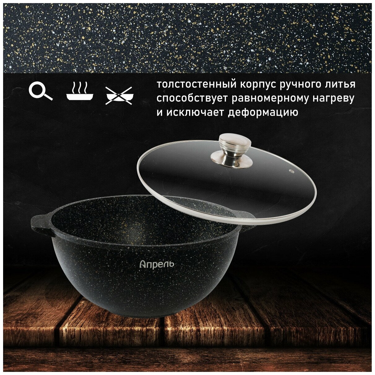 Казан "Апрель" 4,5л Гранит с антипригарным покрытием с крышкой, можно мыть в посудомоечной машине