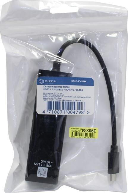 5bites кабели Кабель-адаптер UA3C-45-10BK USB3.1 сетевая карта 3 USB3.0 RJ45 1G BLACK