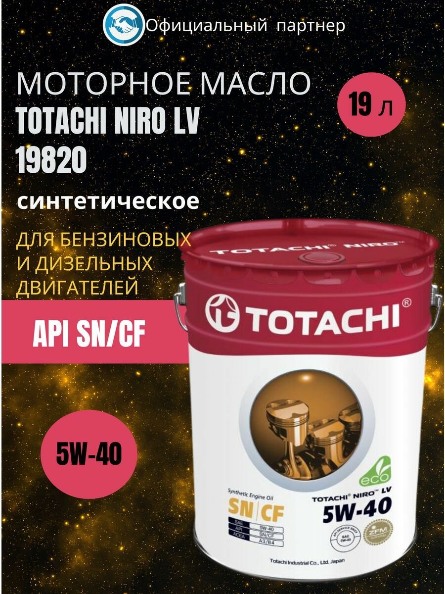 TOTACHI 19820 TOTACHI NIRO LV Synthetic SAE 5W-40 API SN/CF 19л => API SP, SN PLUS, SN/CF, ACEA A3/B4