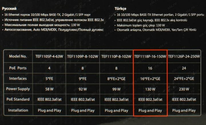 | Дополнительная информация | один комбо-порт RJ45/SFP; бюджет PoE 135Вт |