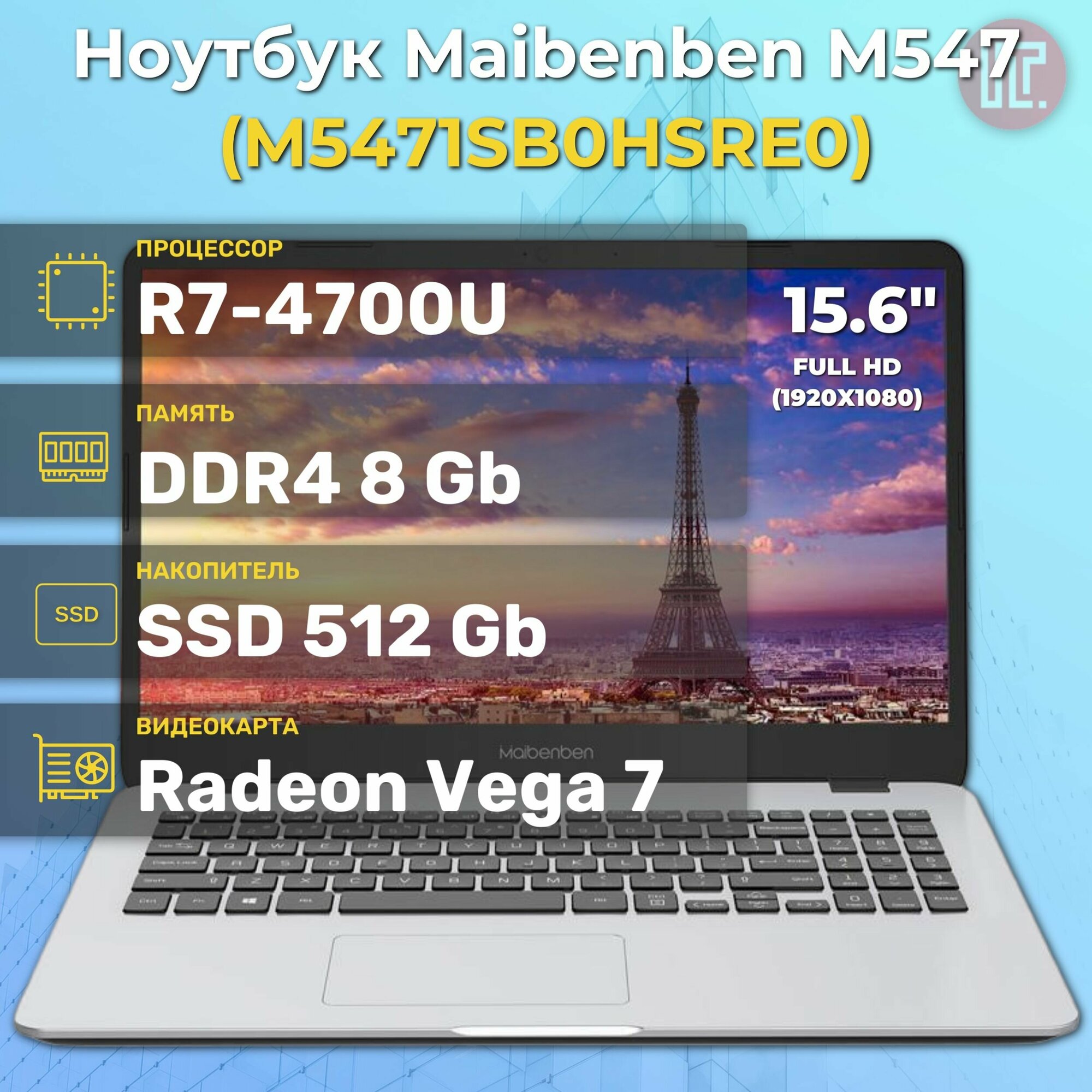 Ноутбук MAIBENBEN M547 M5471SF0HSRE1 (15.6", Ryzen 7 Pro 4750U, 16 ГБ/ SSD 512 ГБ) Серебристый