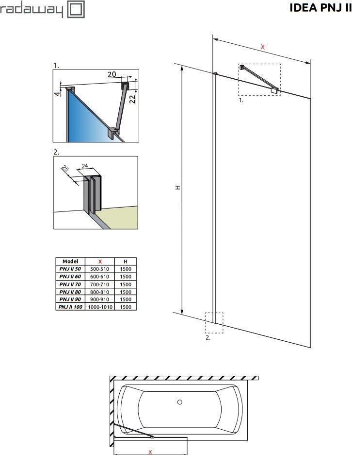 Шторка для ванны Radaway Idea PNJ II 60 10001060-01-01 прозрачное интересное: