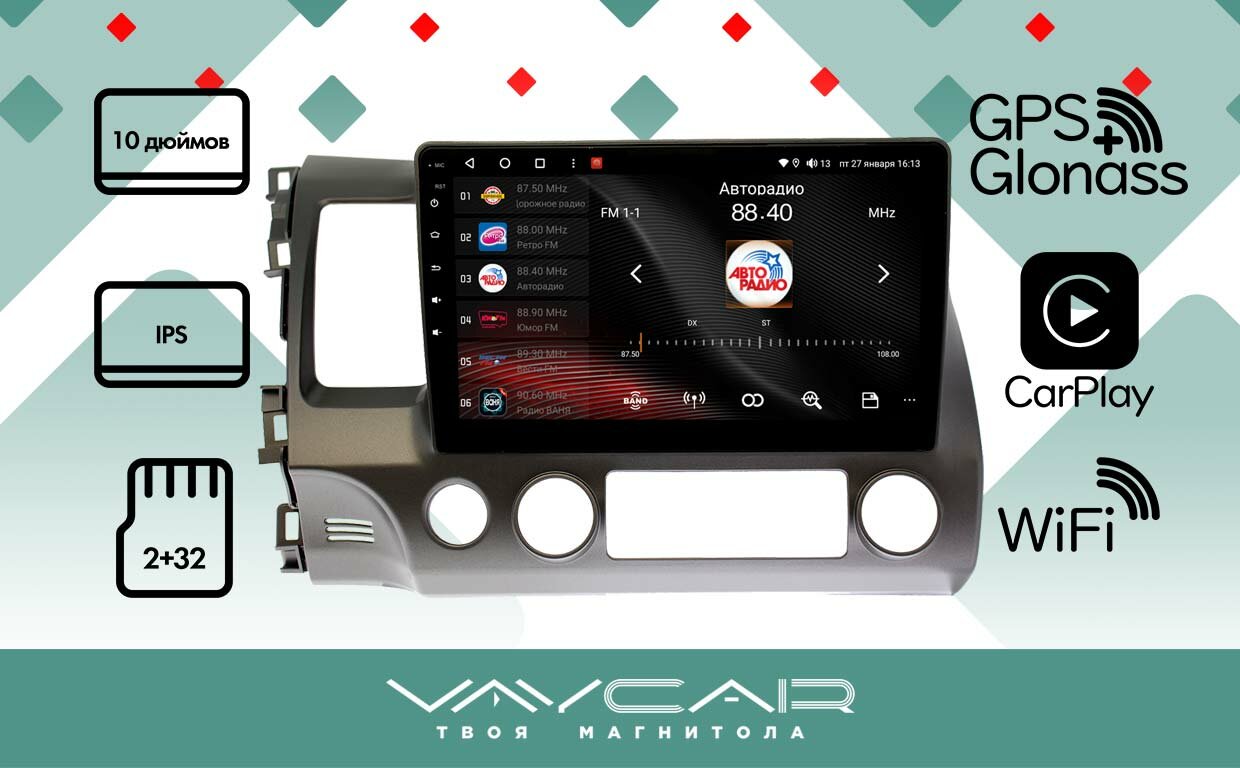 Купить Магнитола Vaycar 10L для HONDA Civic 4D 2006-2011 Андроид, 2+32Гб