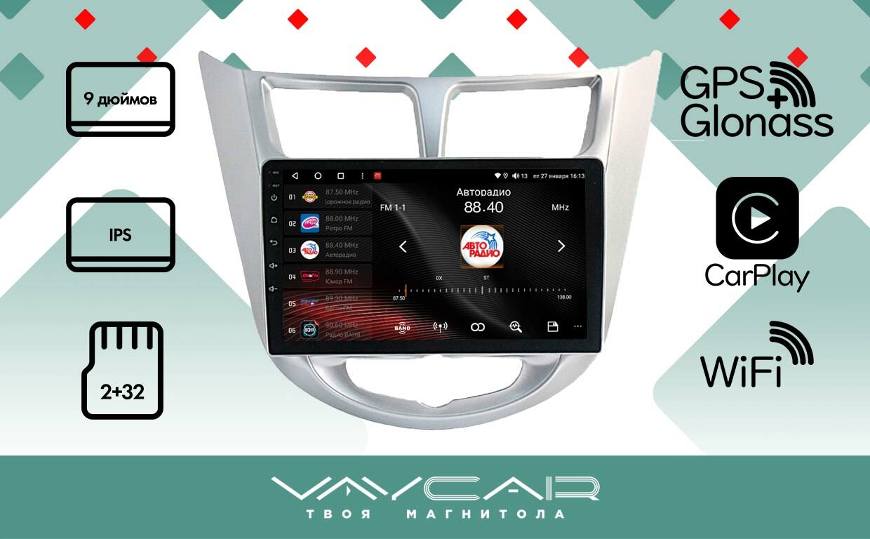 Купить Магнитола Vaycar 09L для HYUNDAI Solaris 2011-2016 Андроид, 2+32Гб
