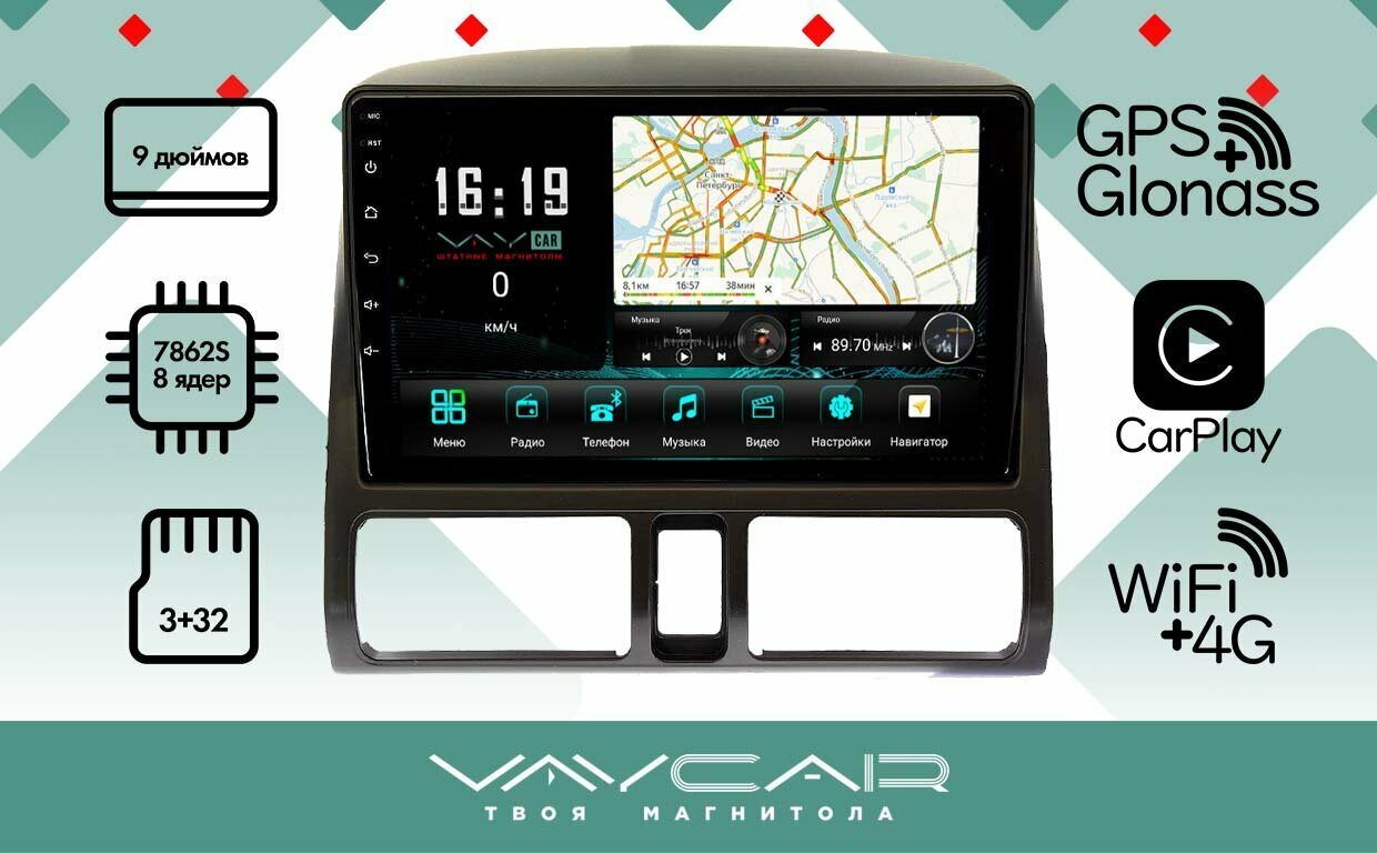 Магнитола Vaycar 09VO8 для HONDA CRV 2004-2006 (Андроид, 8+128, 8 ядер, WiFi, BT, 4G, GPS, QLED 9")