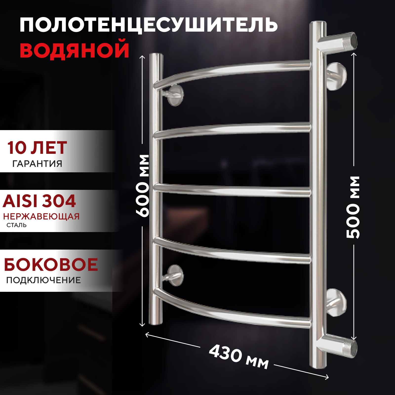 Водяной полотенцесушитель Energy Ideal 800x500