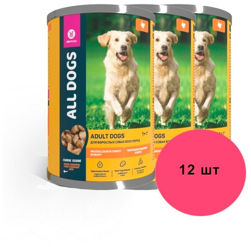 Влажный корм All dogs для собак, тефтельки с индейкой в соусе, банка,415 г