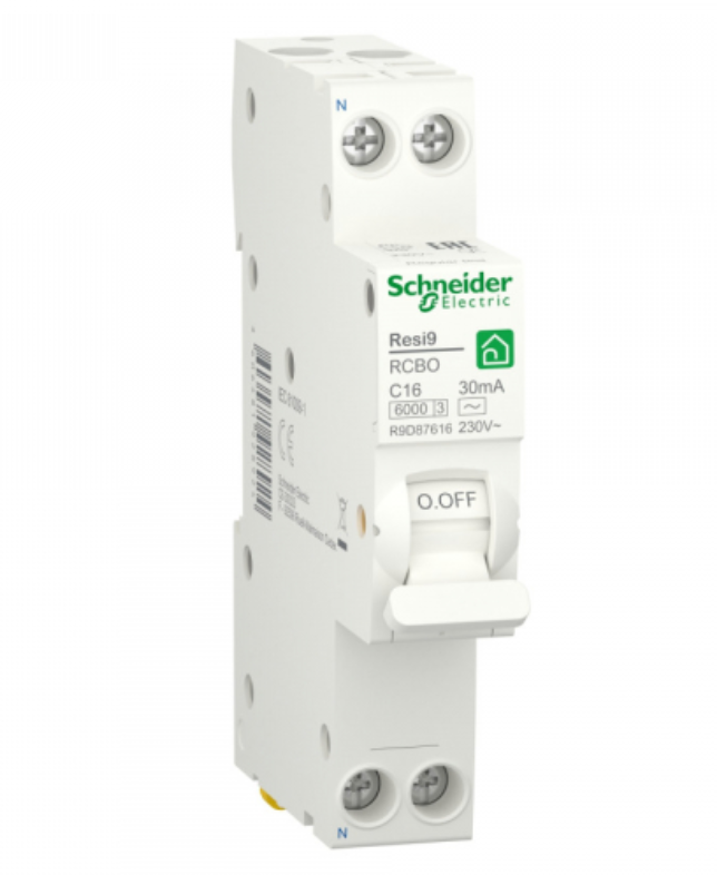 R9D87616 Дифференциальный автоматический выключатель Schneider Electric Resi9 1П+N 16А 30мА, тип AC, 6кА, C