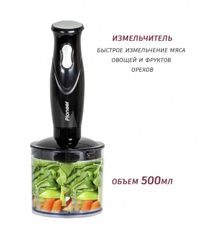 Блендер 3 в 1 Pioneer HB127S, миксер + измельчитель c S-образным ножом для твердых продуктов, 3 насадки, 1000 Вт