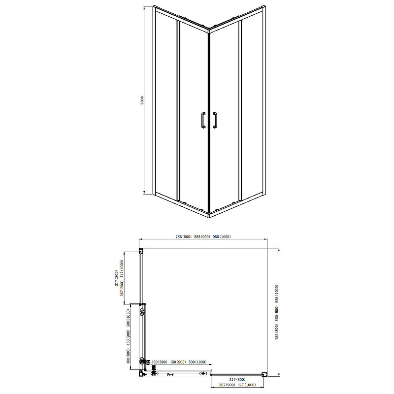 AquaTek AQ NAA 1142-80 Душевой уголок квадратный, двери раздвижные 800x800x2000 профиль хром, стекло прозрачное