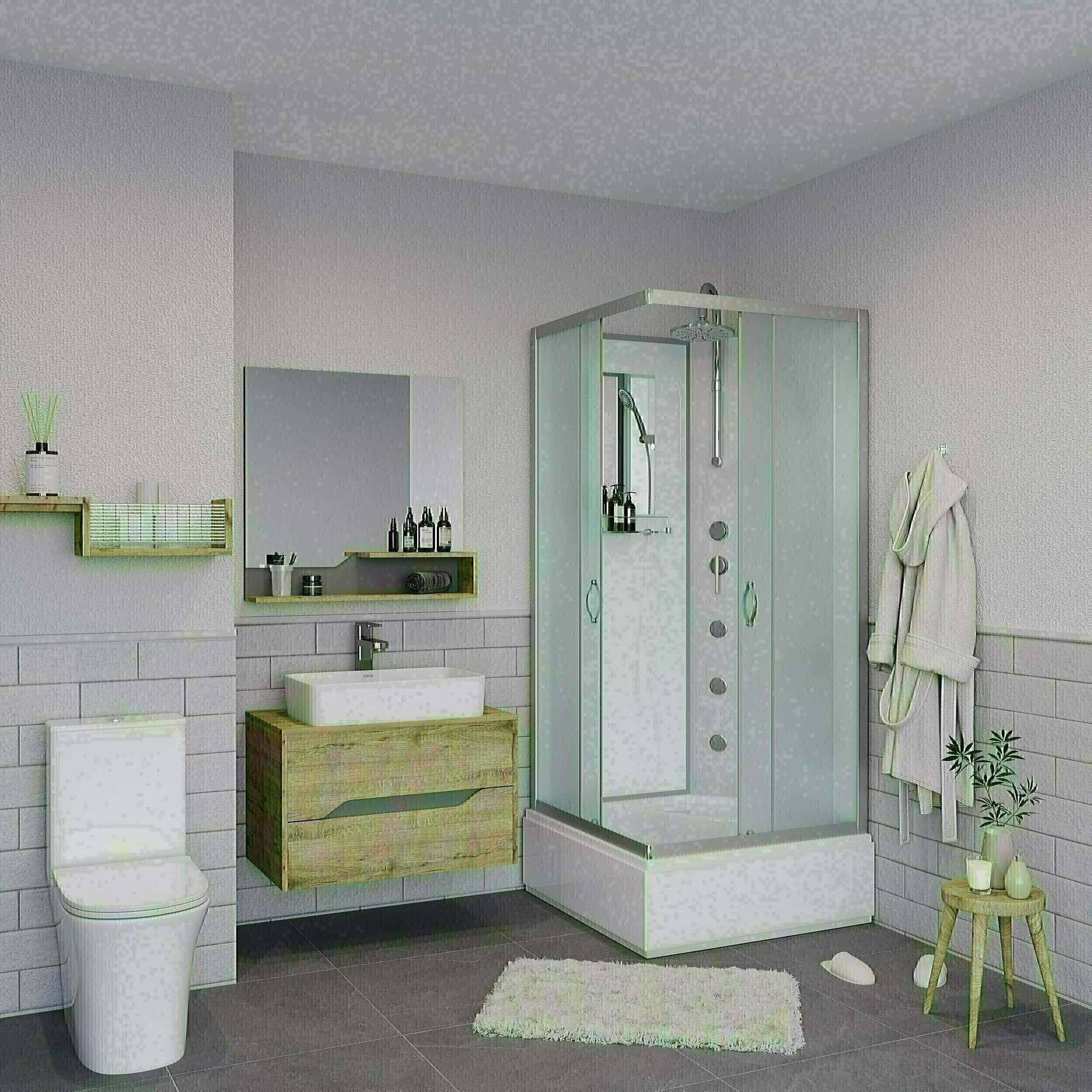 | Комплектация | душевая лейка, зеркало, поддон, полки, сиденье |