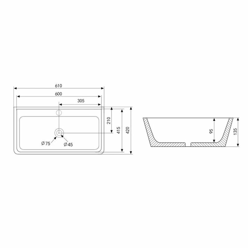 Раковина накладная Abber Rechteck 61 см AC2201MB