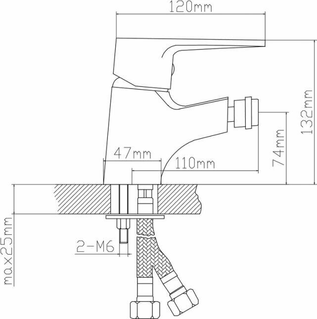 Смеситель для биде. Картридж: керамический 40 мм. Крепление: шпилька. Материал: латунь. В комплекте: подводка из нержавейки 60 см