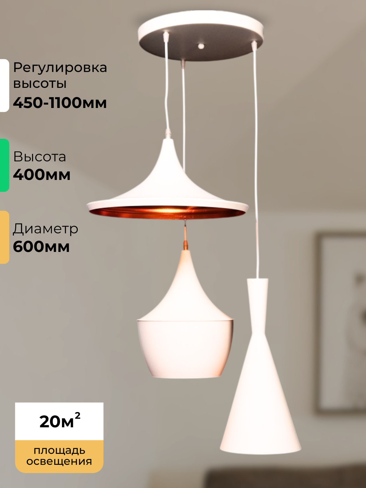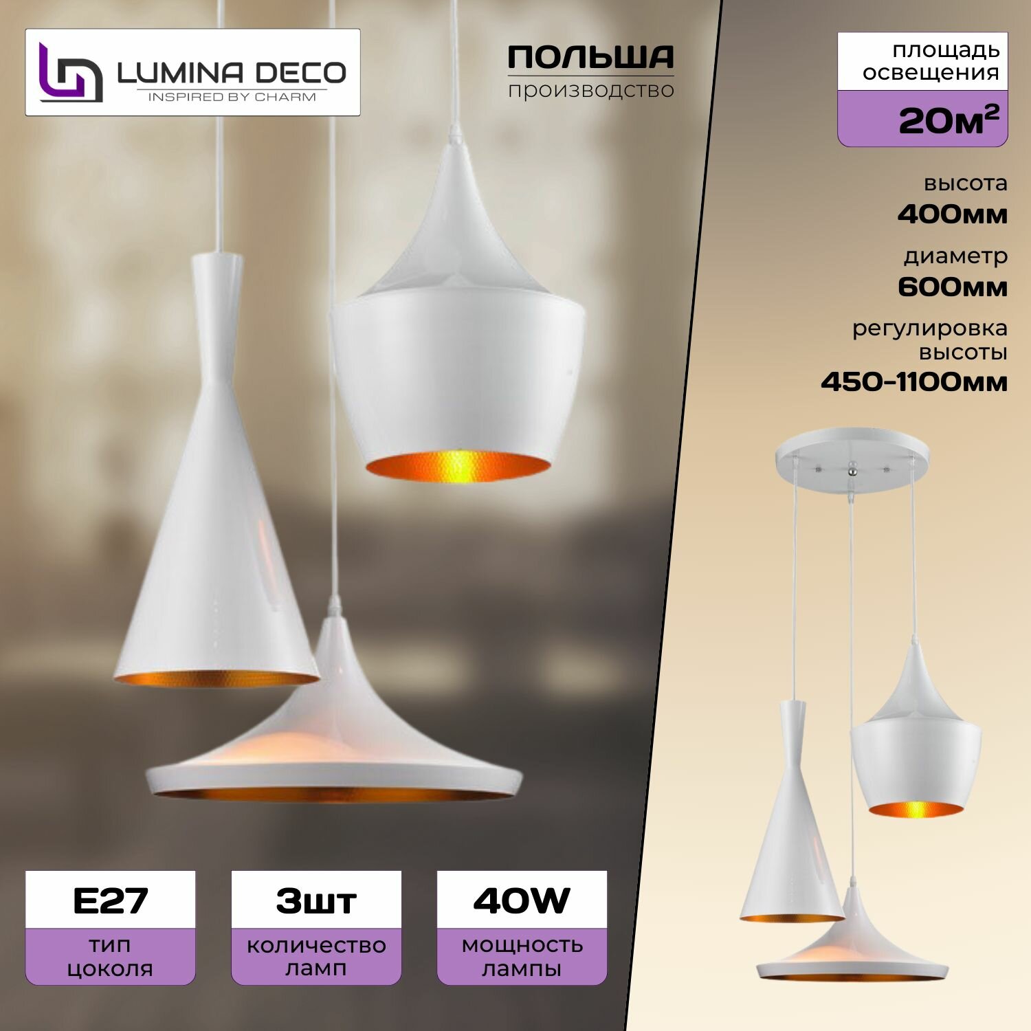 Светильник подвесной Lumina Deco Capri LDP 11327B-3 PR WT, E27, кол-во ламп:3шт., Белый